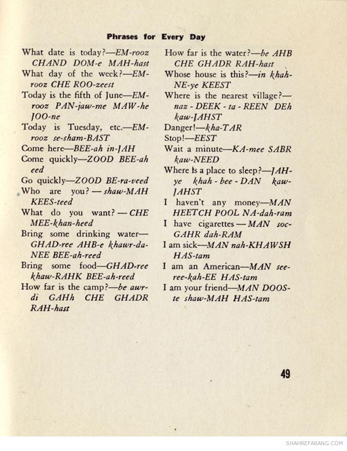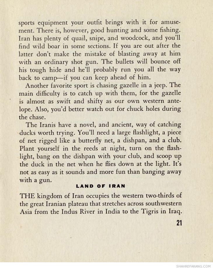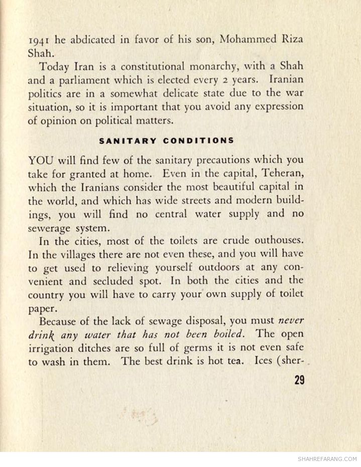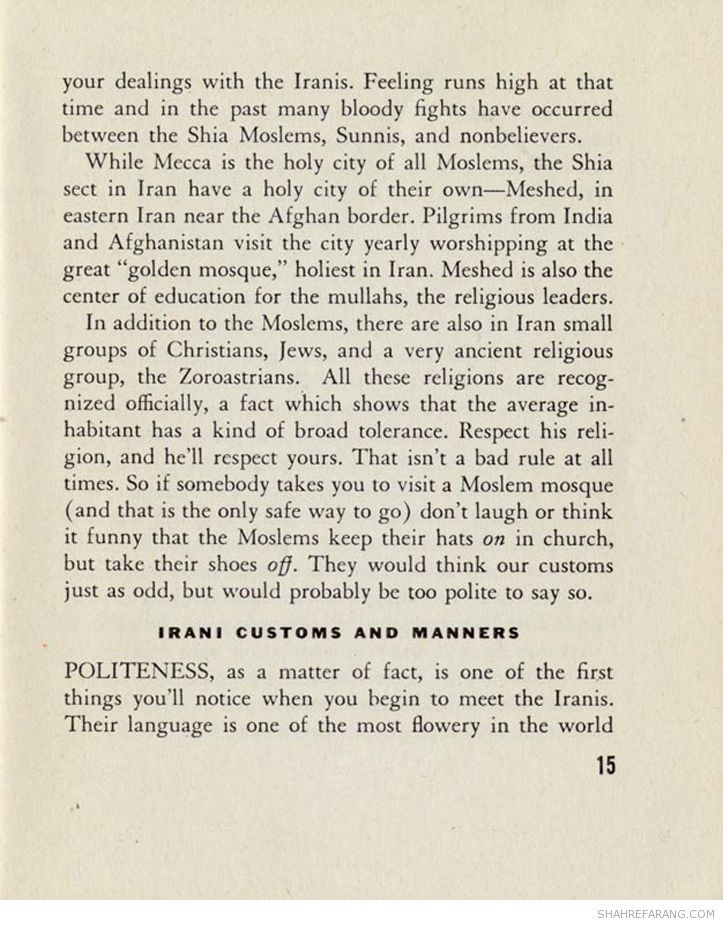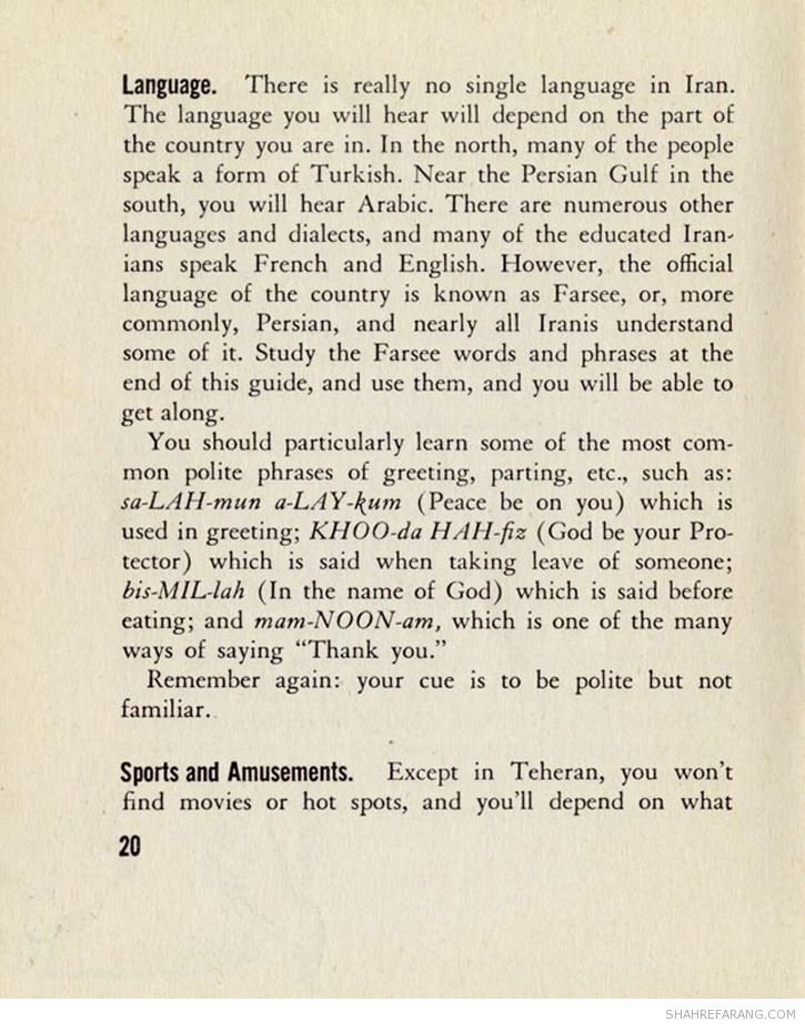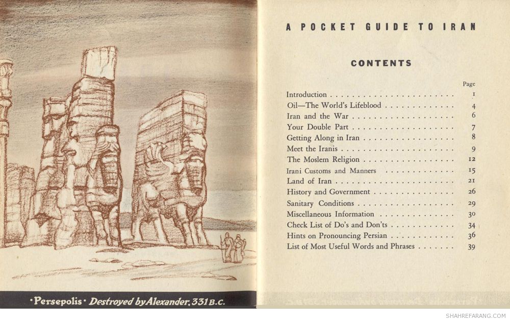 در آگهی شرکت حمل و نفل پولمن که در سال ۱۹۴۴ منتشر شده است به راهنمای جیبی ایران اشاره شده است.