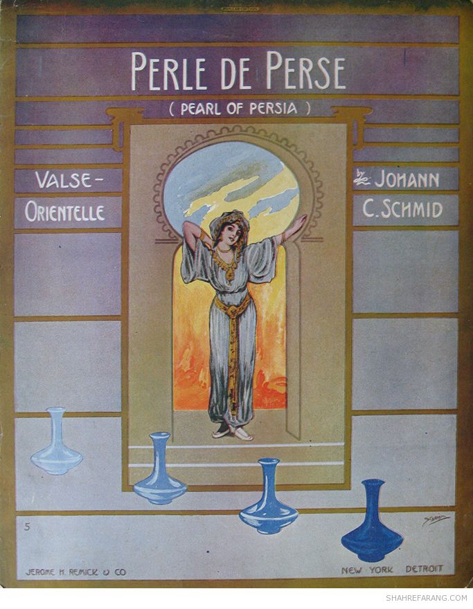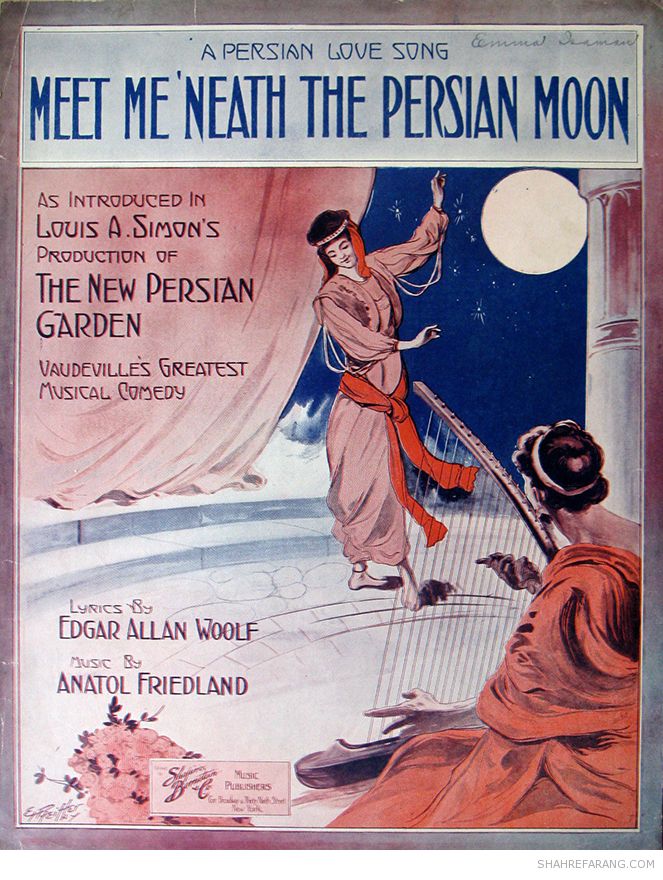 سرزمین های خاور میانه، از جمله ایران، در تصور اروپاییان و آمریکاییان قرن نوزدهم و آغاز قرن بیستم دنیایی رازآمیز و رویاگونه تصور می شدند. ایران در تصاویر روی جلد دفترچه های موسیقی و جلد ترانه ها و آثار نمایشی این دوران سرزمینی است با شب هایی زیبا، بناهایی غریب و زنانی «زلف آشفته و خوی کرده و خندان لب و مست».