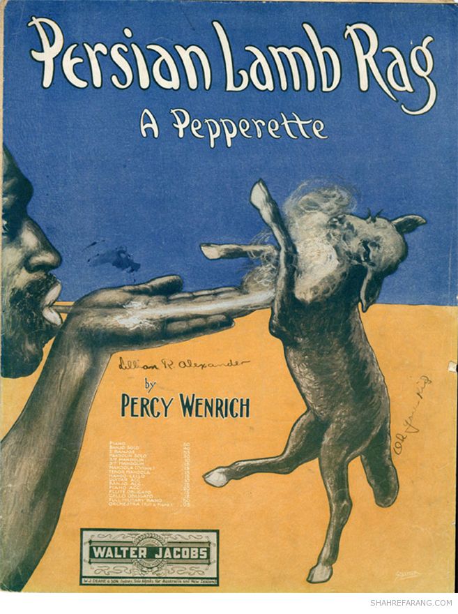 در سال های آغازین قرن بیستم که دستگاه پخش موسیقی هنوز در دسترس همه نبود کتابچه های نت ترانه های پرطرفدار در تیراژ وسیع چاپ و منتشر می شد تا علاقه مندان بتوانند این ترانه ها را بنوازند و بخوانند. تصاویر جلدهایی که در اینجا آمده اند مربوط به ترانه ها و قطعه هایی از آغاز قرن بیستم هستند که به نوعی به ایران اشاره می کنند.