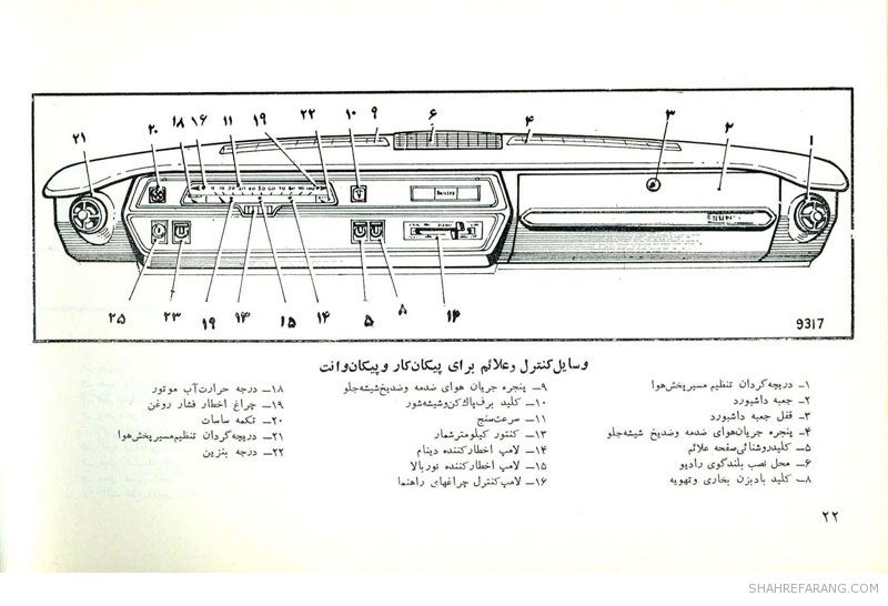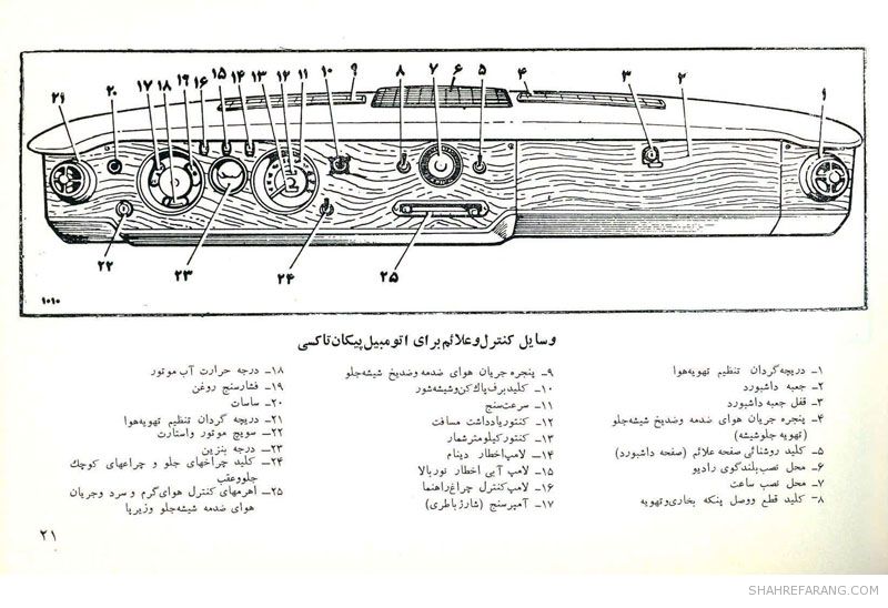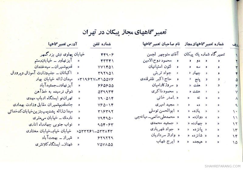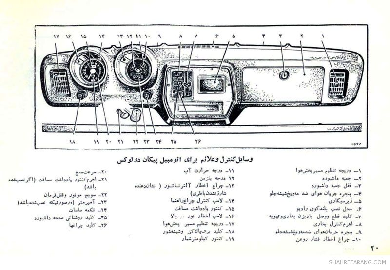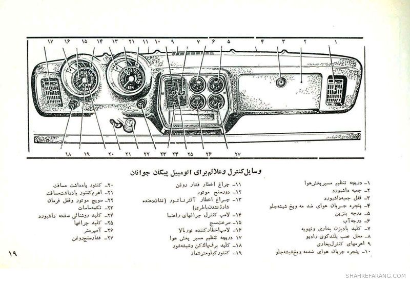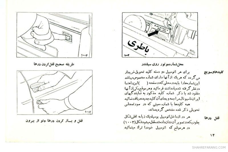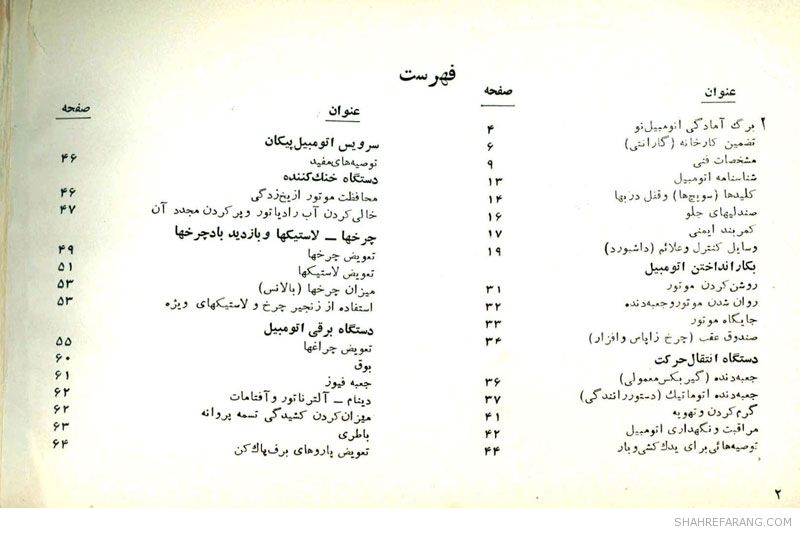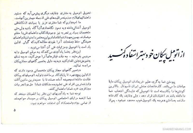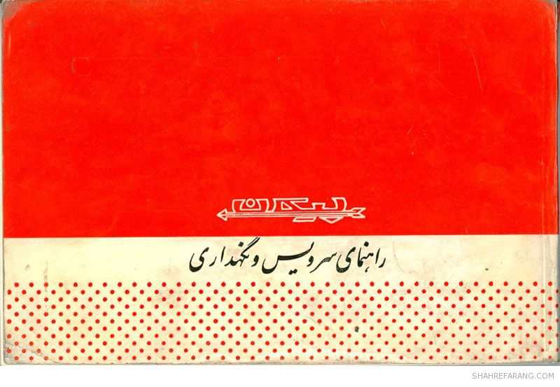 چند صفحه از راهنمای سرویس و نگهداری خودروی پیکان که شرکت ایران ناسیونال (ایران خودروی کنونی) تولید آن را از سال ۱۳۴۶ آغاز کرد و حدود ۴۰ سال آن را ادامه داد.