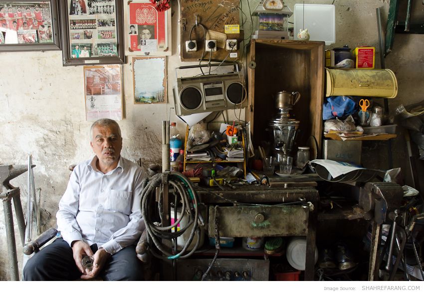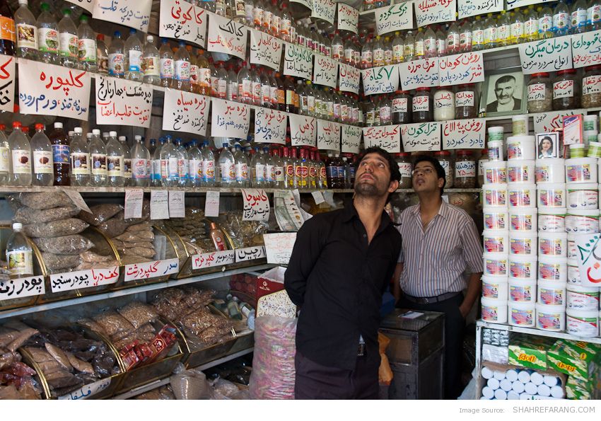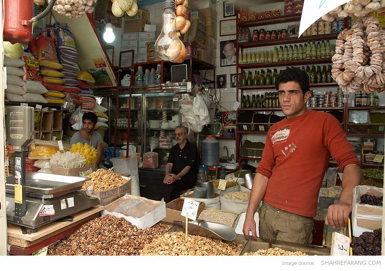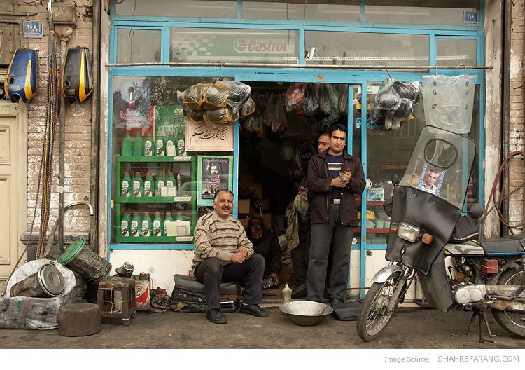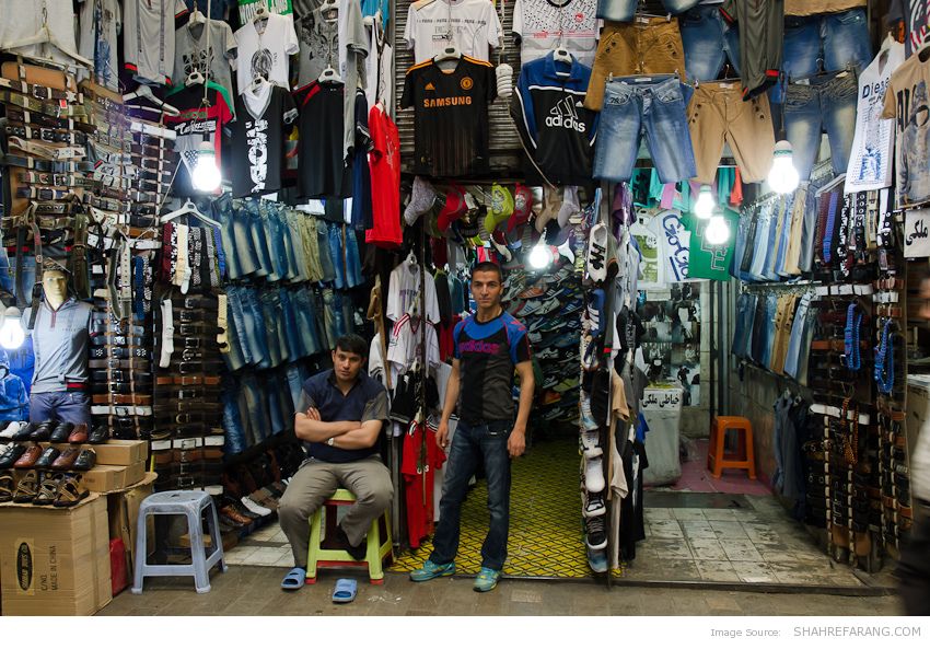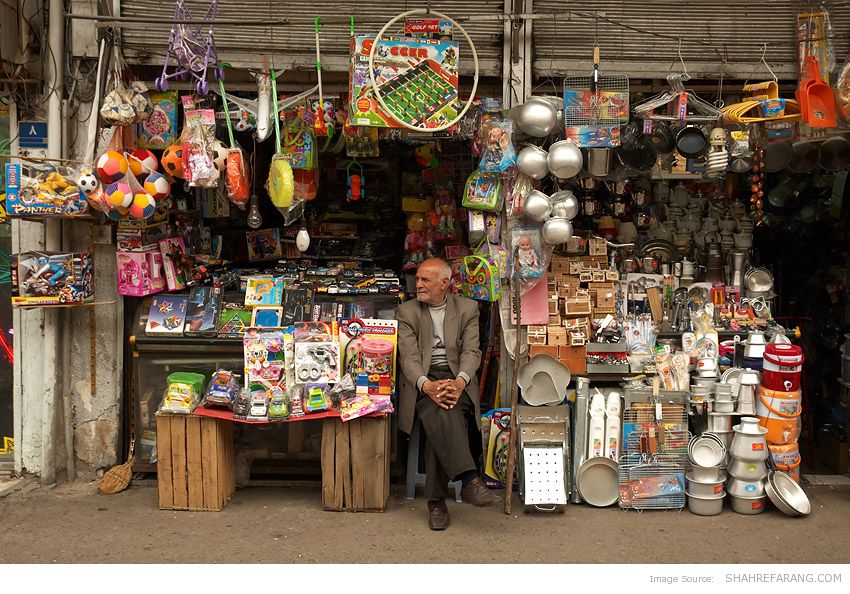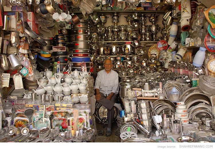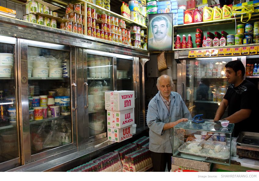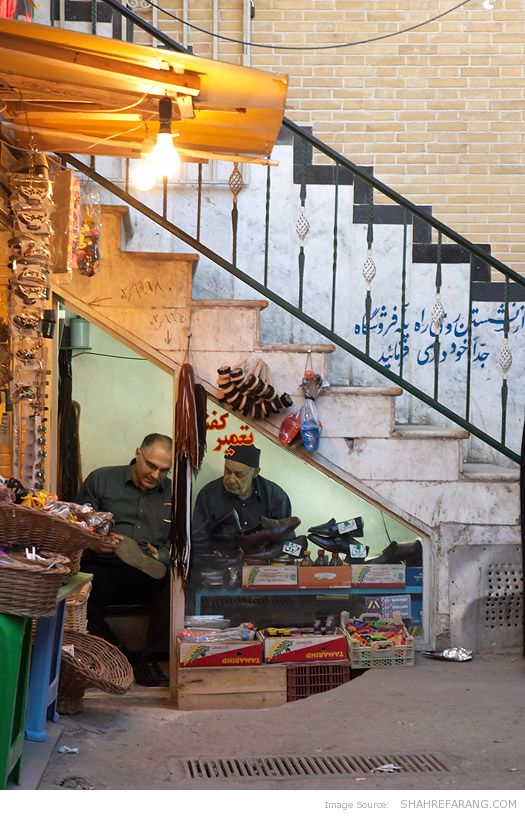 مغازه های تهران مثل مغازه های اغلب شهرهای ایران فروشگاه هایی کوچک اند که از هر گوشه ی فضای کوچک آنها برای کاری استفاده شده است.