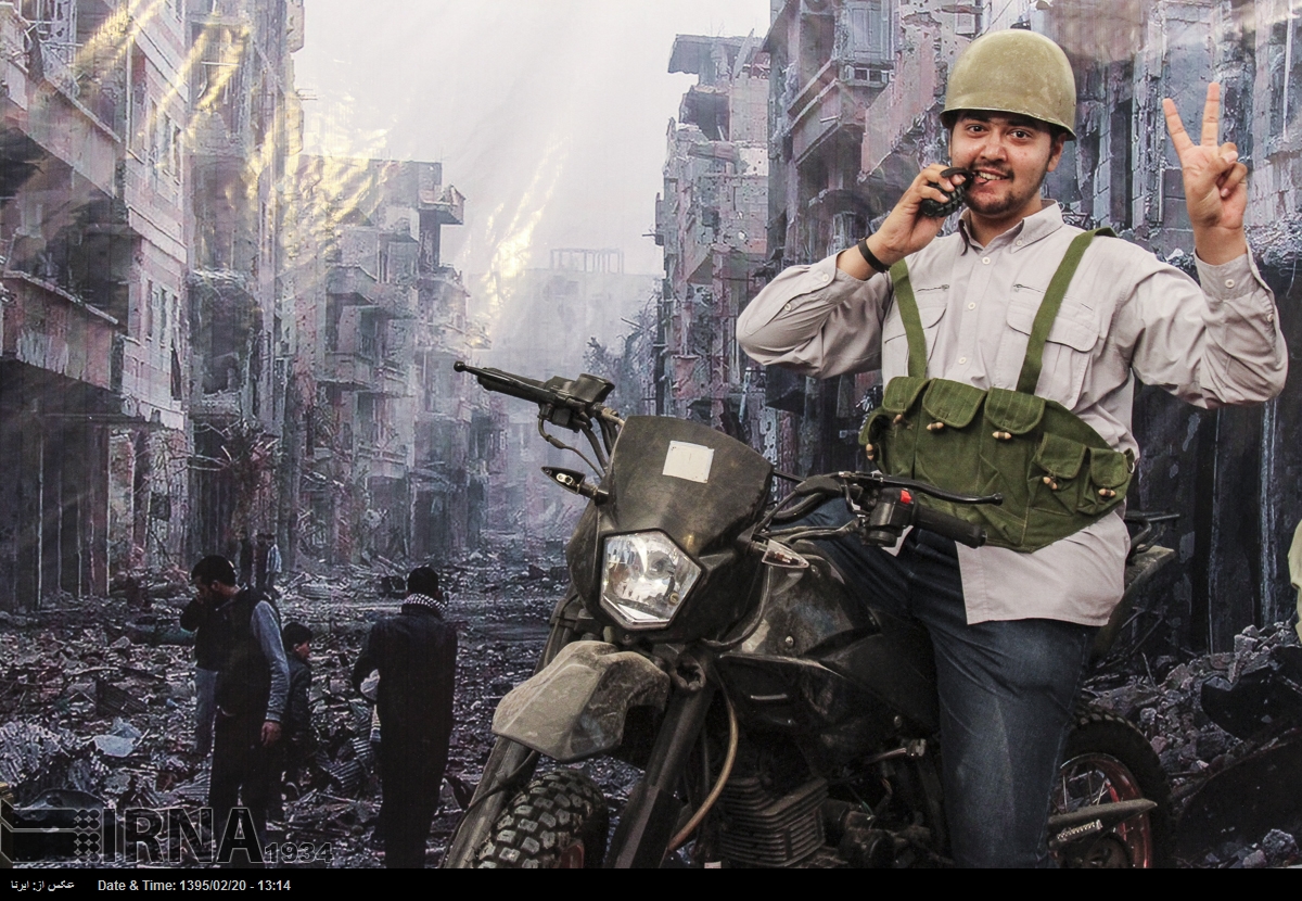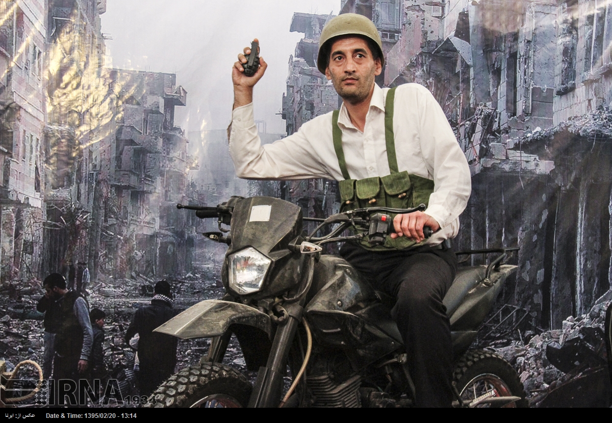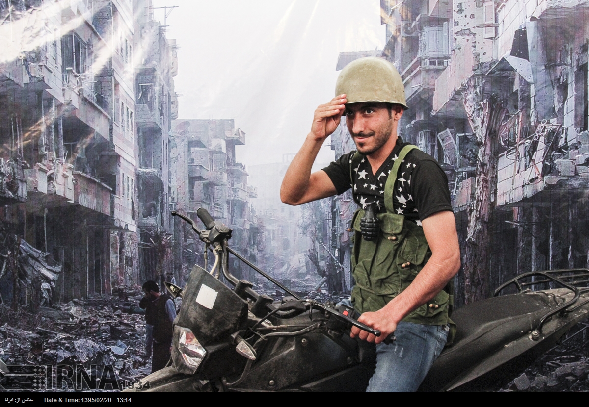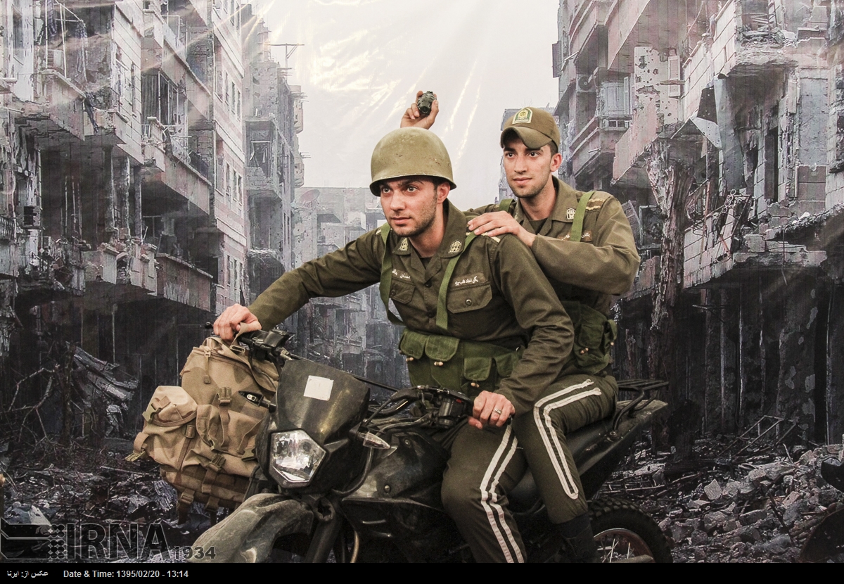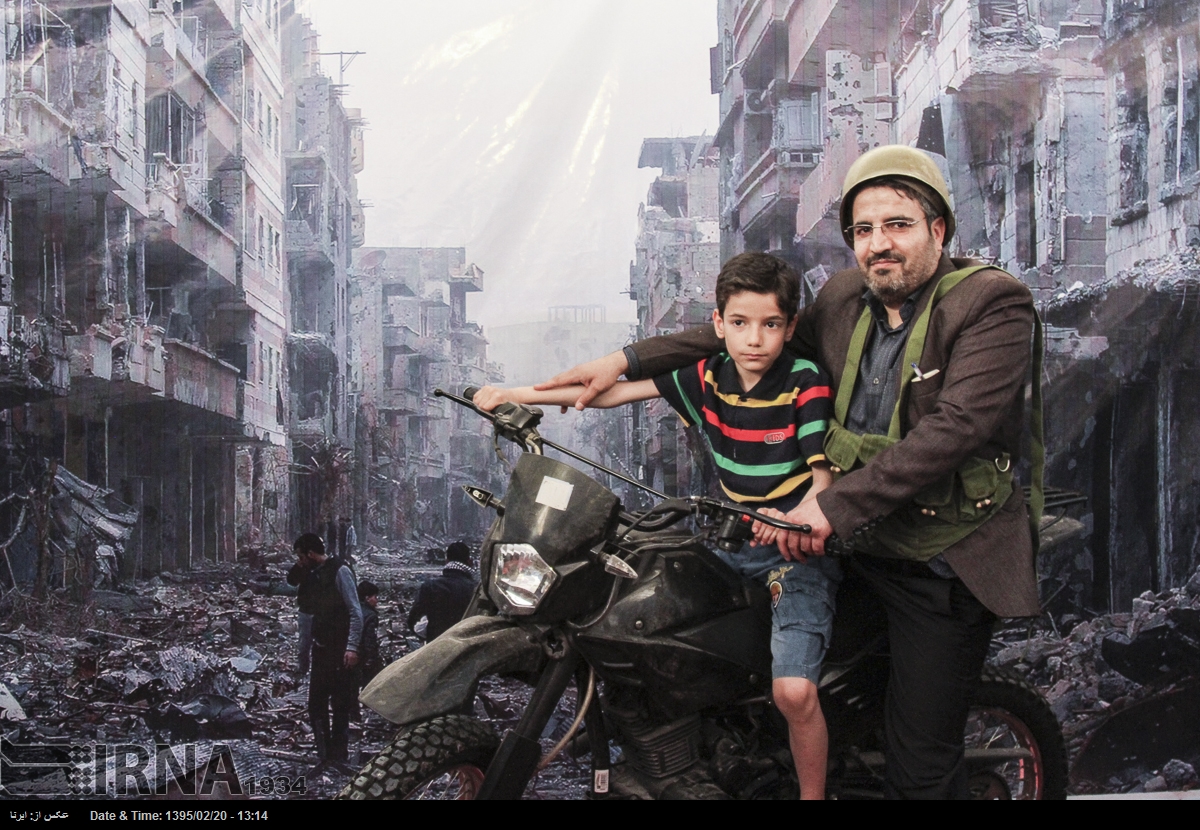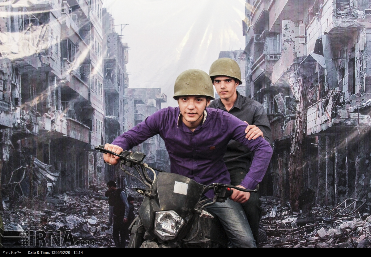 در نمایشگاه بین المللی کتاب تهران در سال ۱۳۹۵ بازدیدکنندگان می توانستند در غرفه ی عکس «شهدای مدافعان حرم» با پوشیدن لباس و تجهیزات نظامی در مقابل تصویری از ویرانه های شهری در سوریه عکس یادگاری بگیرند. خبرگزاری جمهوری اسلامی که ناشر این تصاویر است این عکس ها را «مجازی و معنوی» توصیف می کند.