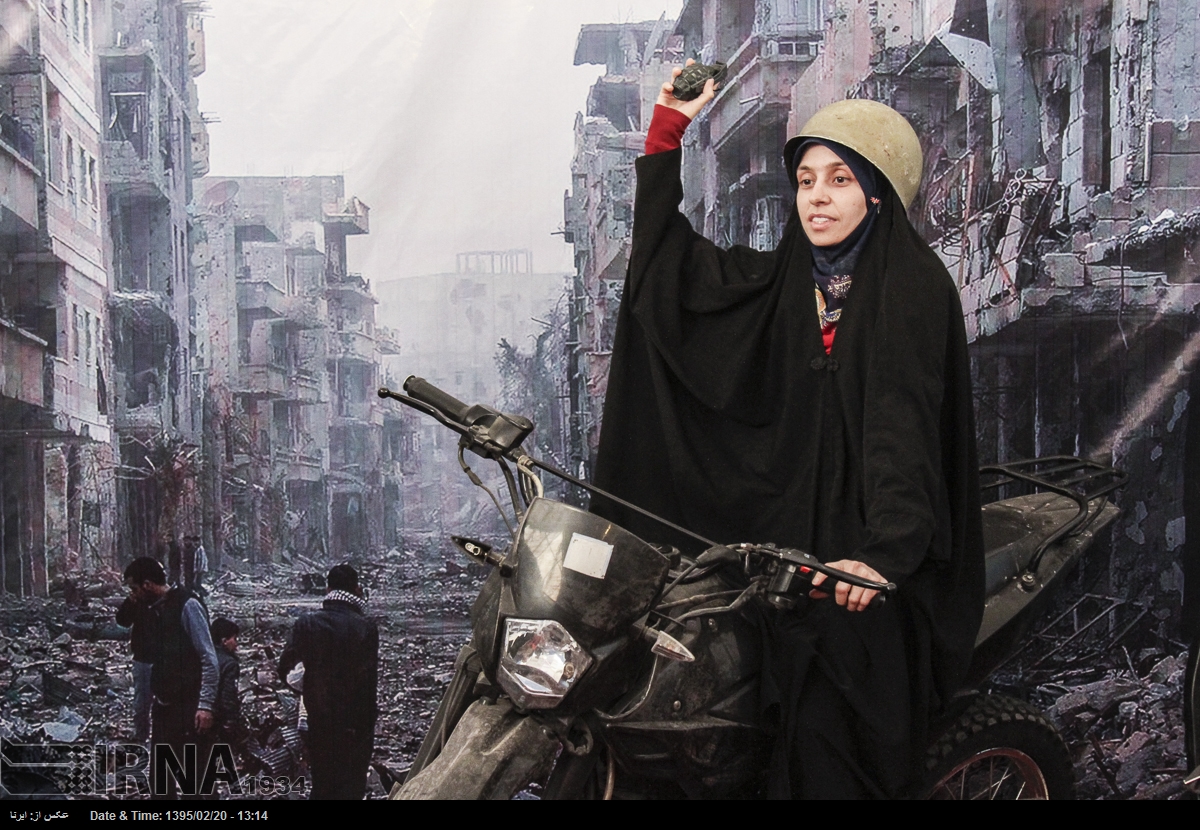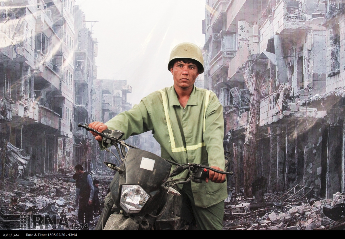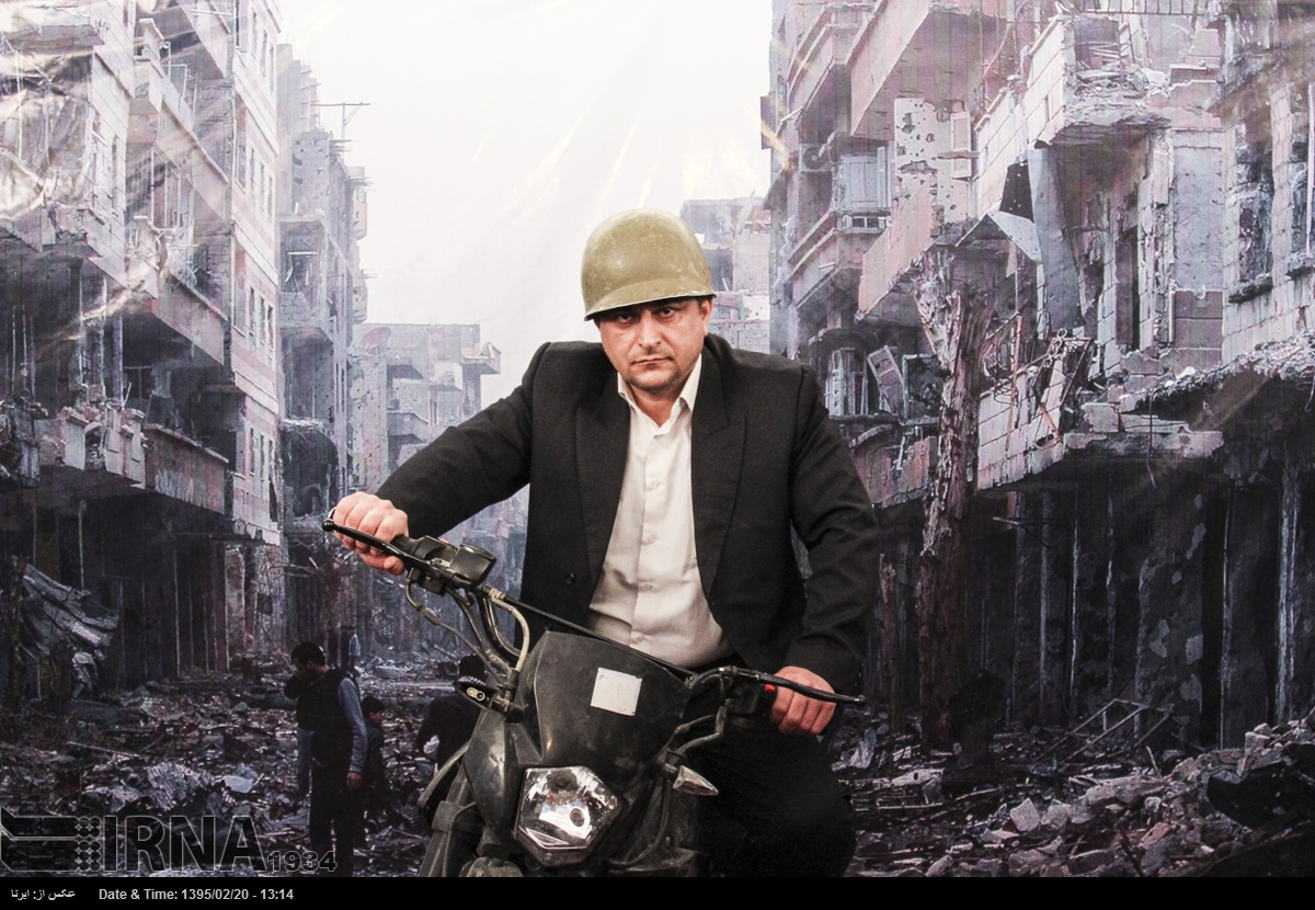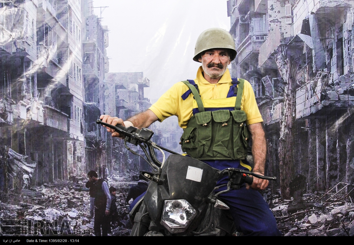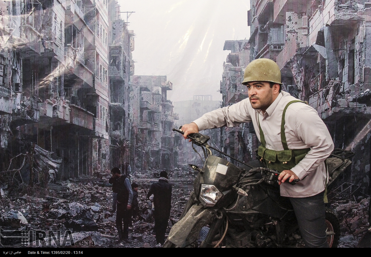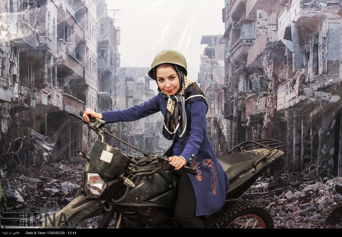 در نمایشگاه بین المللی کتاب تهران در سال ۱۳۹۵ بازدیدکنندگان می توانستند در غرفه ی عکس «شهدای مدافعان حرم» با پوشیدن لباس و تجهیزات نظامی در مقابل تصویری از ویرانه های شهری در سوریه عکس یادگاری بگیرند. خبرگزاری جمهوری اسلامی که ناشر این تصاویر است این عکس ها را «مجازی و معنوی» توصیف می کند.